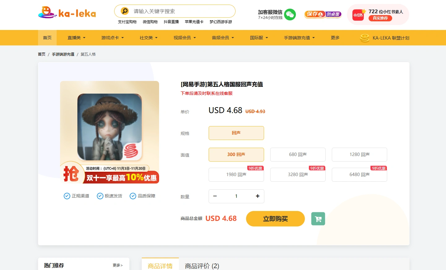 在海外也想第一时间获得昨日之笼新角色女王蜂吗?打开卡乐卡ka-leka海外华人充值平台注册即可轻松搞定。海外充值第五人格,畅玩昨日之笼新剧情!