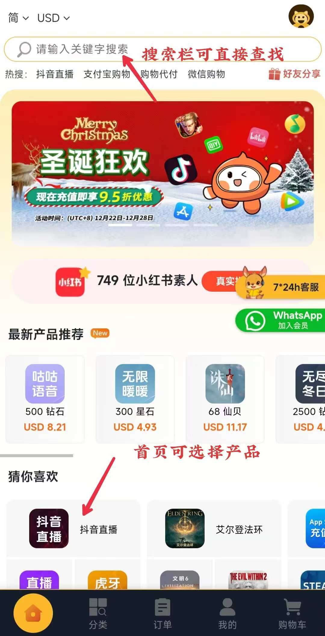 想在圣诞季为抖音账号充值钻石,享受更丰富的直播互动或内容推广体验吗?卡乐卡ka-leka提供了便捷的海外充值服务,全程操作简单透明,更有圣诞专属优惠。以下是完整的抖音钻石充值流程,助您轻松完成充值: