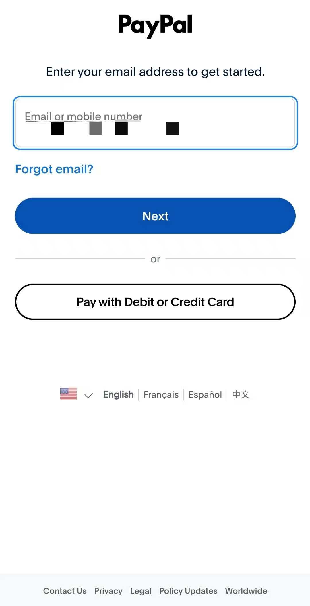 第四步:如图使用PayPal可登录账户或直接使用借记卡/信用卡支付